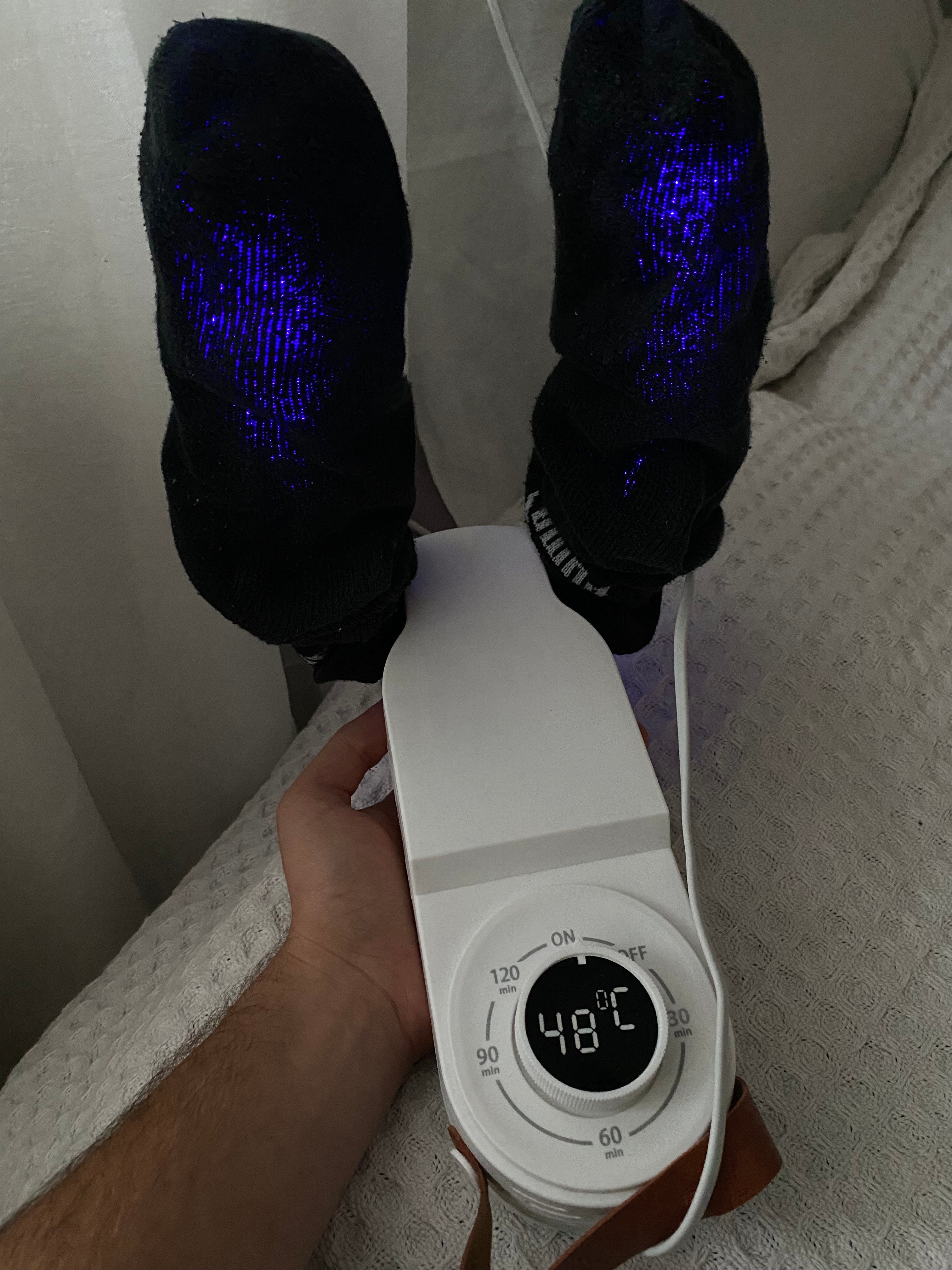 "Na codzień biegam rekreacyjnie i często mi się moczą buty. Ta suszarka super się sprawdza. Włączam po treningu na 30min i buty są jak nowe. Nawet nieprzyjemny zapach się ulatnia.